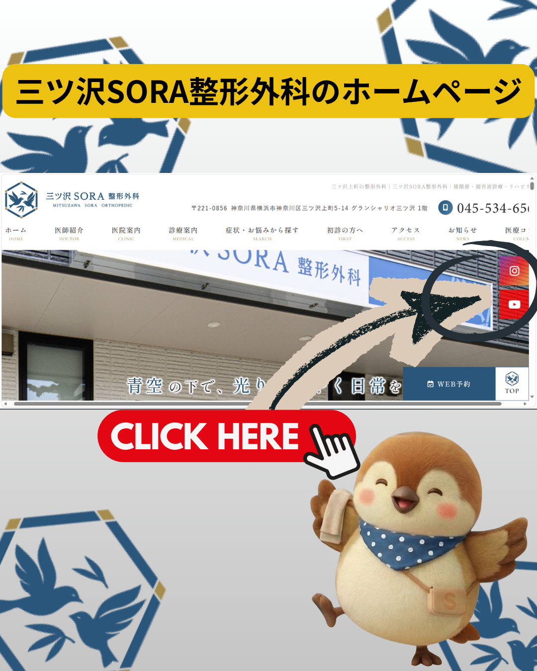 三ツ沢SORA整形外科では、横浜市神奈川区・横浜市保土ケ谷区の皆さんの健康づくりをサポートするため、InstagramとYouTubeチャンネルを運営しています。
