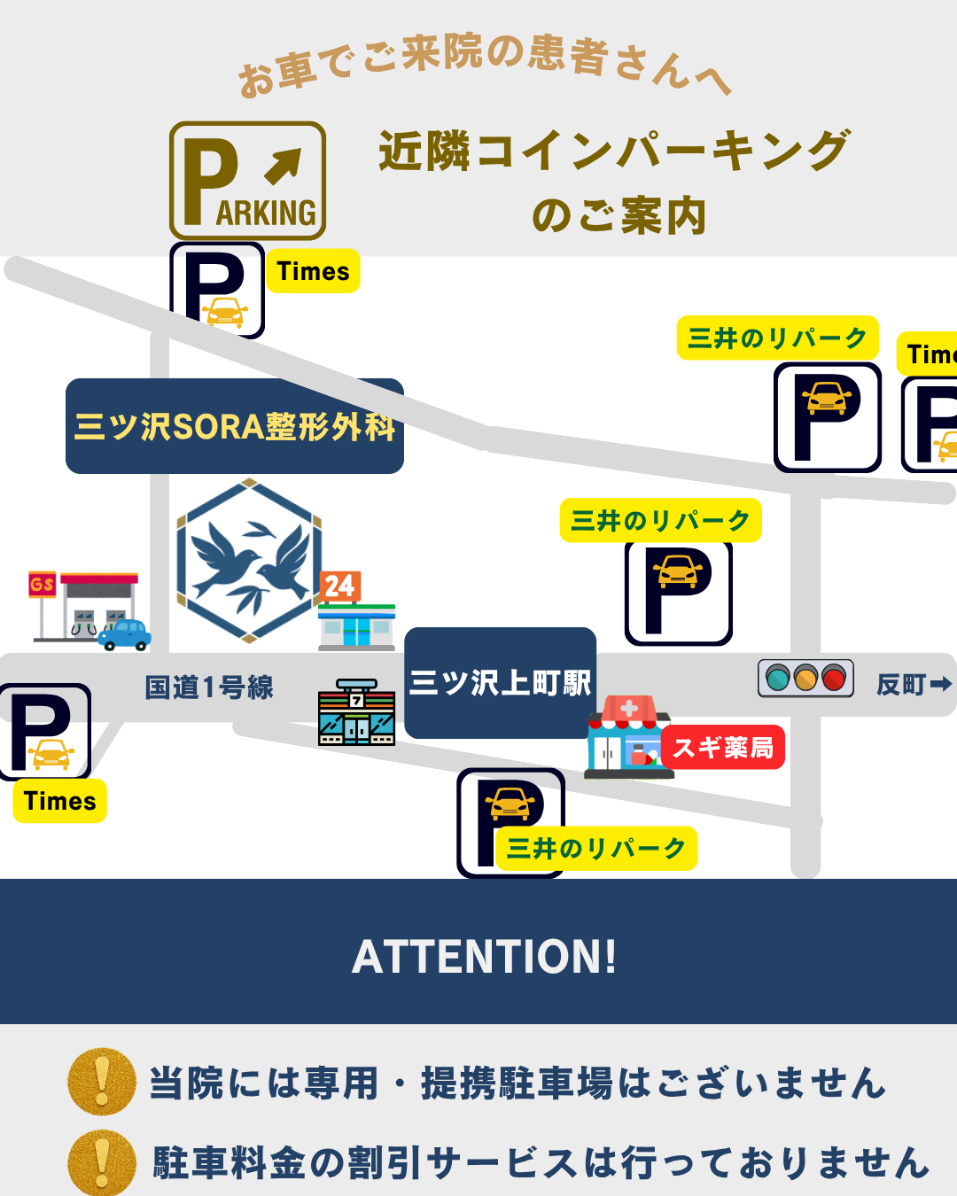 お車でご来院の患者さんへ(近隣コインパーキングのご案内)
